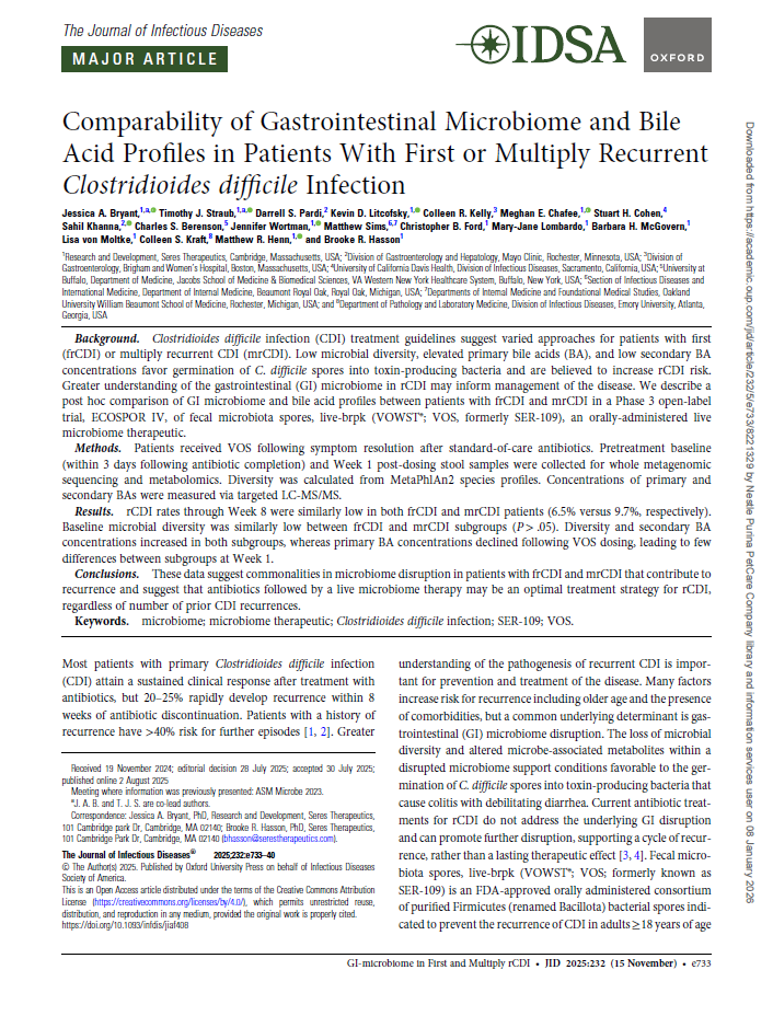Keywords. microbiome; microbiome therapeutic; Clostridioides difficile infection; SER-109; VOS.